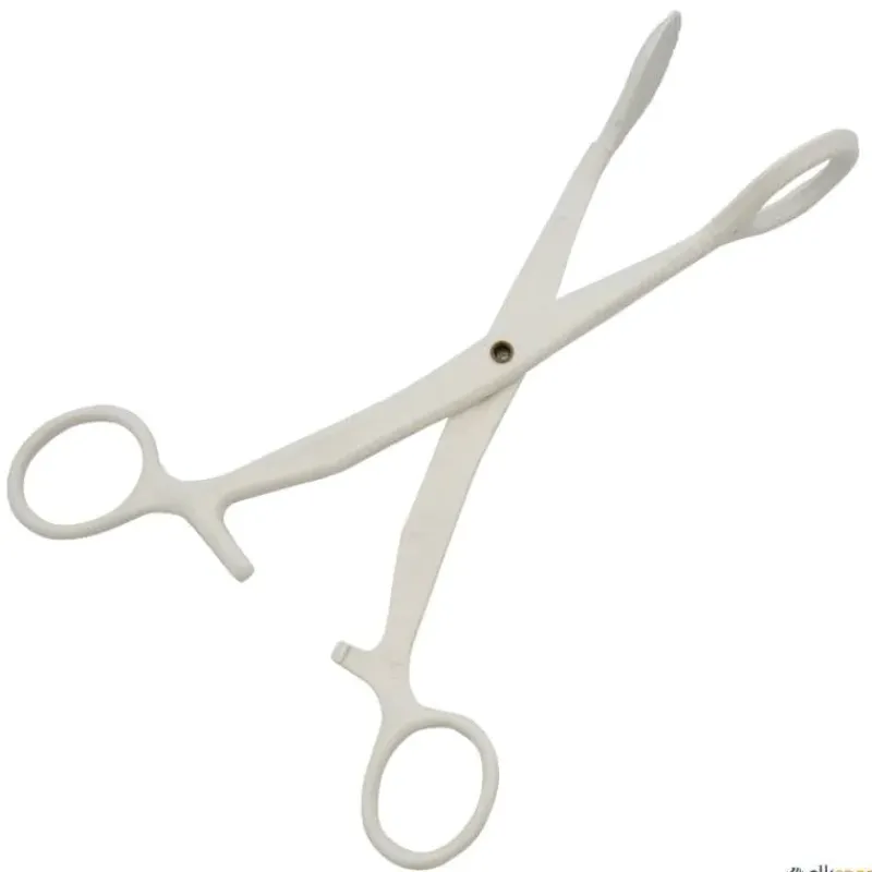 Pinza tiralenguas fabricada en policarbonato para traccionar de la lengua en caso de traumatismo y emergencia.
