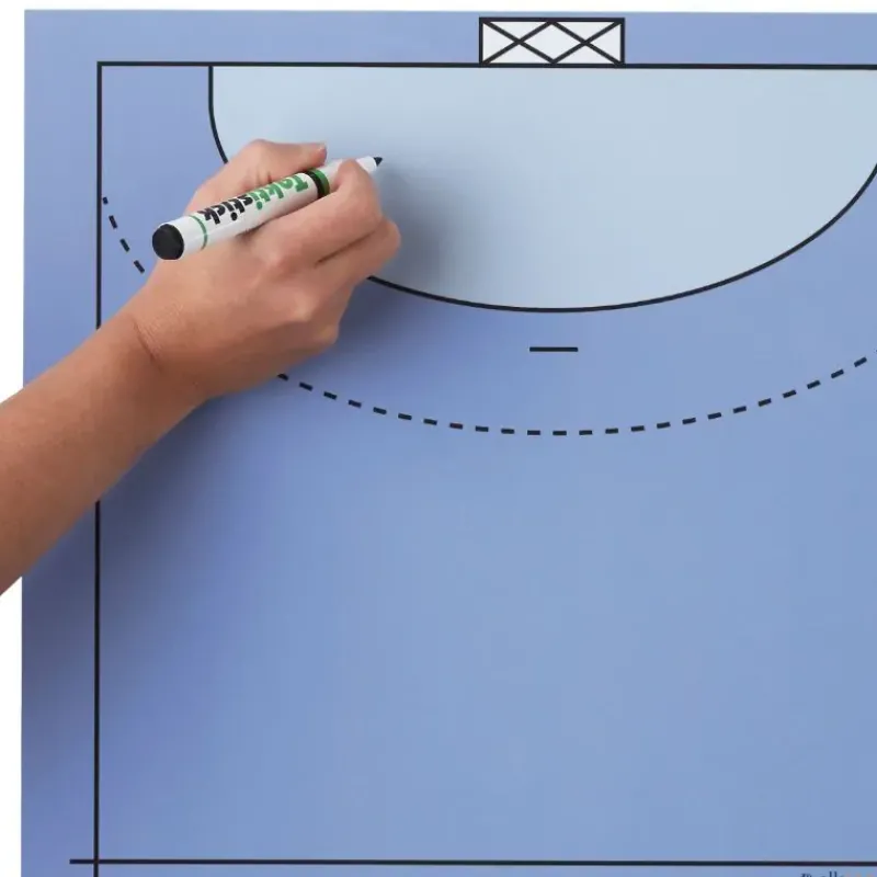Esta pizarra táctica borrable para balonmano se adhiere mediante carga estática a superficies lisas como ventanas, puertas, paredes de vestuario, etc. No incluye rotulador ni imanes.