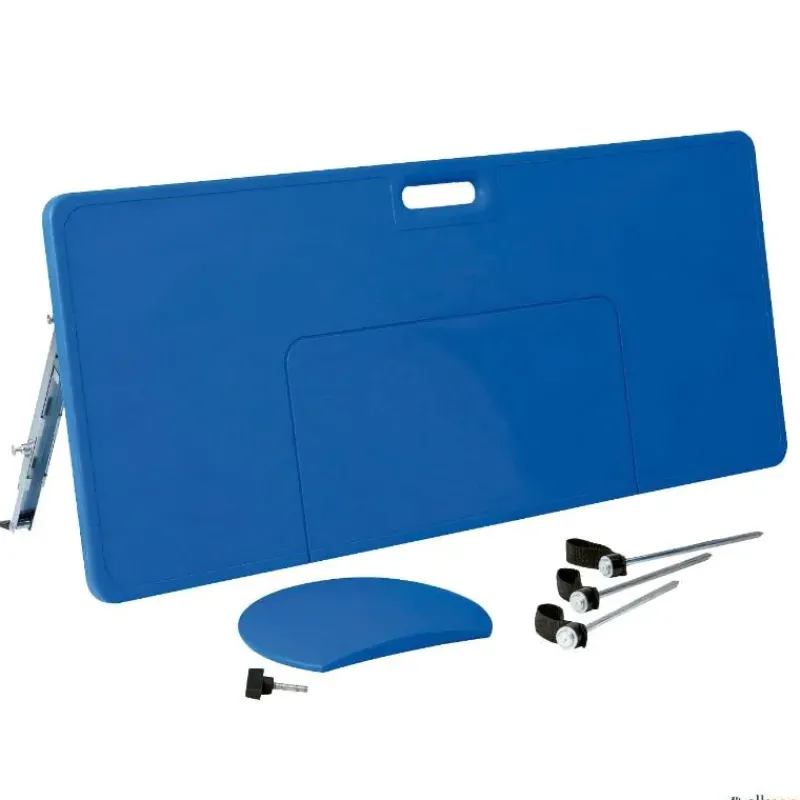 Reboteador perfecto para practicar la técnica de pase. La plancha de rebote puede inclinarse en diferentes ángulos (90°, 105° y 125°), además incluye un elemento curvo movible que modifica el ángulo de rebote de la pelota. Incluye clavijas de acero y mazo.