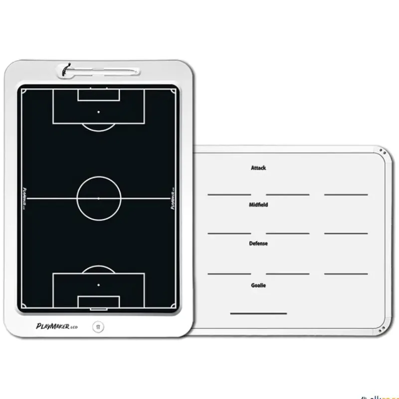 La pizarra táctica de fútbol Playmaker LCD incluye en su parte posterior una pizarra blanca borrable para incluir la lista de jugadores (porteros, defensas, centrocampistas y delanteros), lo que le proporciona aún más funcionalidad a un diseño que ya es delgado y liviano.
