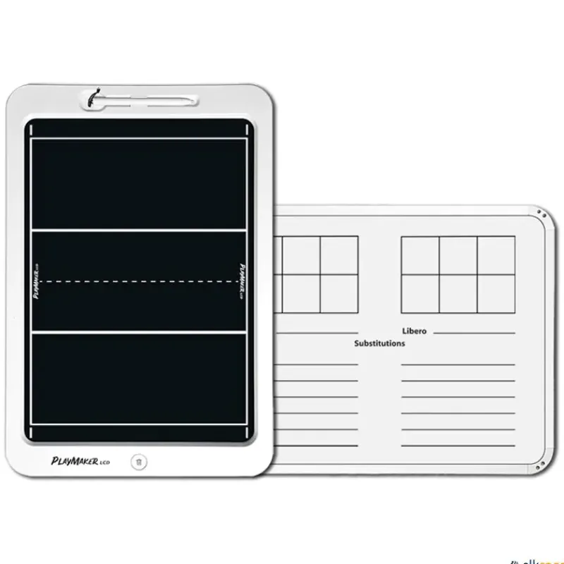 La pizarra táctica de voleibol Playmaker LCD incluye en su parte posterior una pizarra blanca borrable para incluir la lista de jugadores (titulares y suplentes) y su posición en el campo de juego, lo que le proporciona aún más funcionalidad a un diseño que ya es delgado y liviano.
