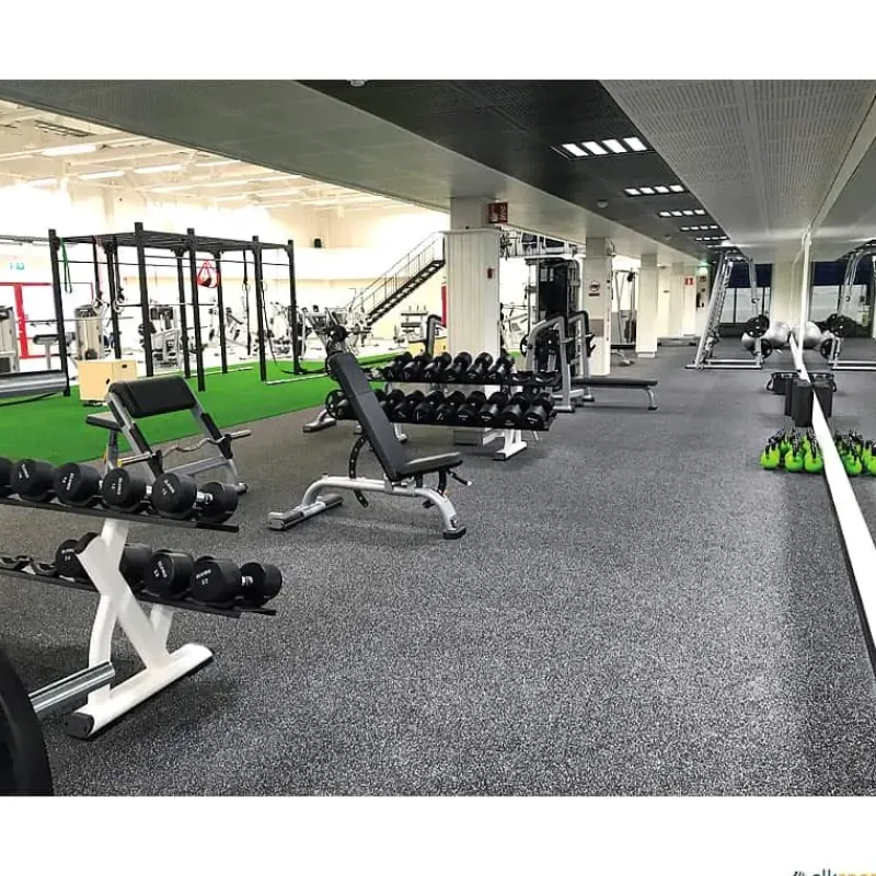 Suelo muy resistente a los impactos mecánicos y cargas puntuales, tiene excelentes características de aislamiento, absorción del ruido de impacto y es extremadamente resistente al uso. Atractivo diseño, antirreflejos, fácil de instalar y de mantener. Es ideal para salas de musculación, ciclo indoor e instalaciones deportivas como aerobic, salas multifuncionales, etc.