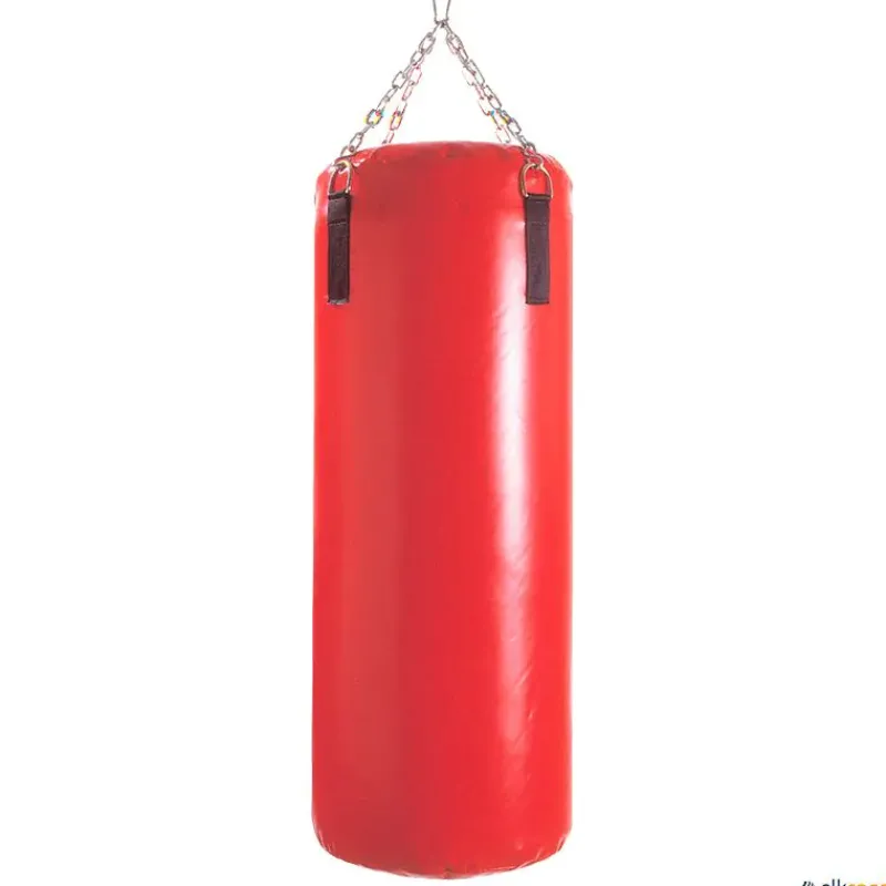 Un buen saco a un buen precio. Saco de boxeo fabricado en vinilo en su parte exterior y relleno de fibras de algodón en su interior. Incluye cadenas y mosquetón.