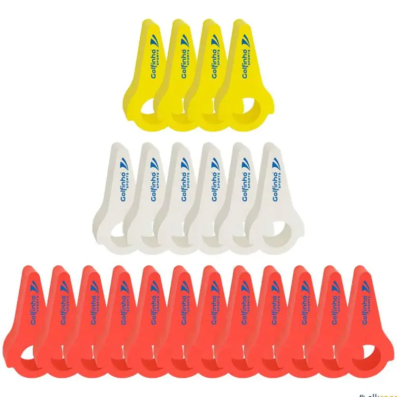 · Se suministran en lotes de 2 (mismo color) o en lotes de 22 (4 amarillos, 6 blancos y 12 rojos) para marcar todo el campo de waterpolo.