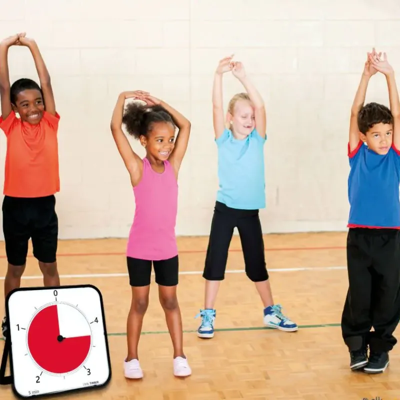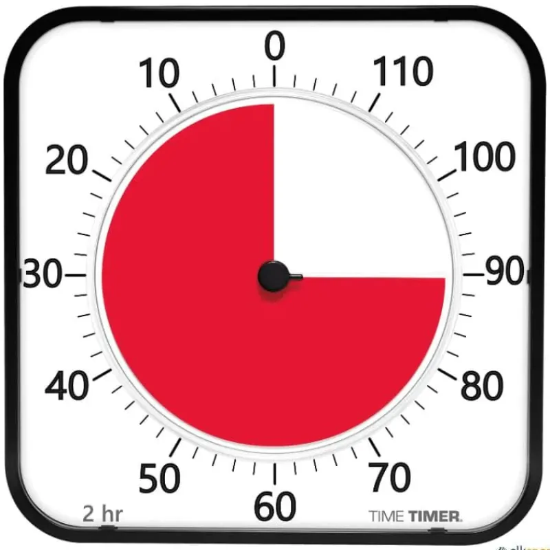 El temporizador ayuda a responder esta pregunta universal. Diseñado para ayudar a los estudiantes y deportistas a comprender «cuánto tiempo queda», ninguna otra ayuda para la enseñanza refuerza el concepto de tiempo transcurrido como el temporizador. Mueva el disco rojo hasta el tiempo deseado, el temporizador comienza la cuenta atrás y el disco rojo va desapareciendo, mostrando el tiempo que falta, esto hace que el paso del tiempo sea visual además de mostrar cuánto tiempo queda. Los niños entenderán fácilmente el temporizador de tiempo incluso cuando no puedan entender la hora en un reloj tradicional.