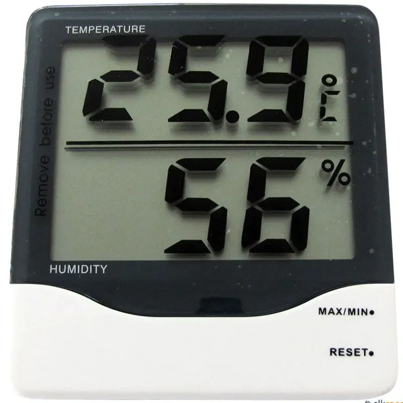 El termómetro higrómetro digital mide la temperatura ambiente y la humedad.