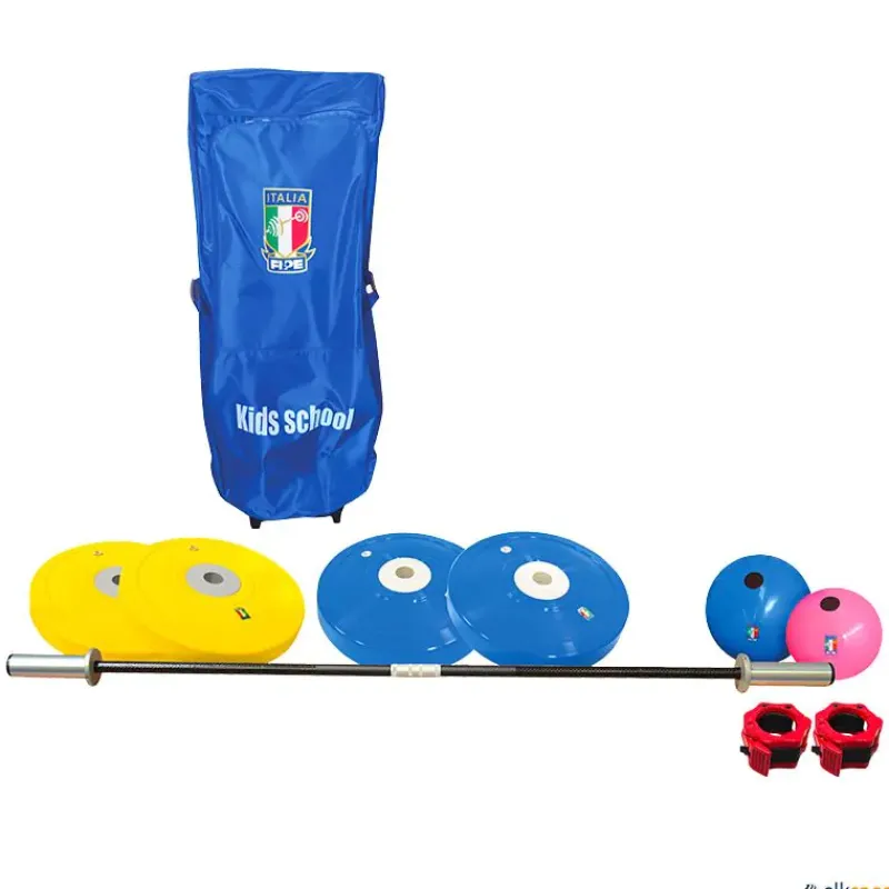 Este kit está diseñado junto con la Federación Italiana de Halterofilia (FIPE) para la iniciación en escuelas y clubs. Especialmente diseñado por Trial para el acercamiento de los niños a la halterofilia, fabricado en Italia con materiales seguros y suaves.