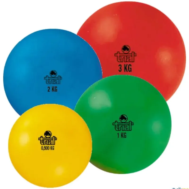 Pesos para lanzamientos de atletismo fabricados en materiales blandos pero muy resistentes, ideales para la iniciación.