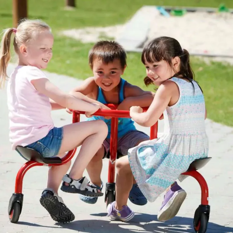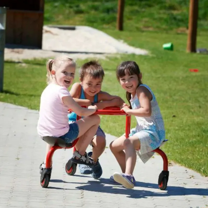 La bicicleta circular es un divertido carrusel que ofrece a los niños trabajar en coordinación, ya que las ruedas pueden ir en cualquier dirección, para dirigirse donde les indique el profesor o donde ellos decidan. Muchas posibilidades de juegos de carácter relacional. Se sirve completamente montado.
