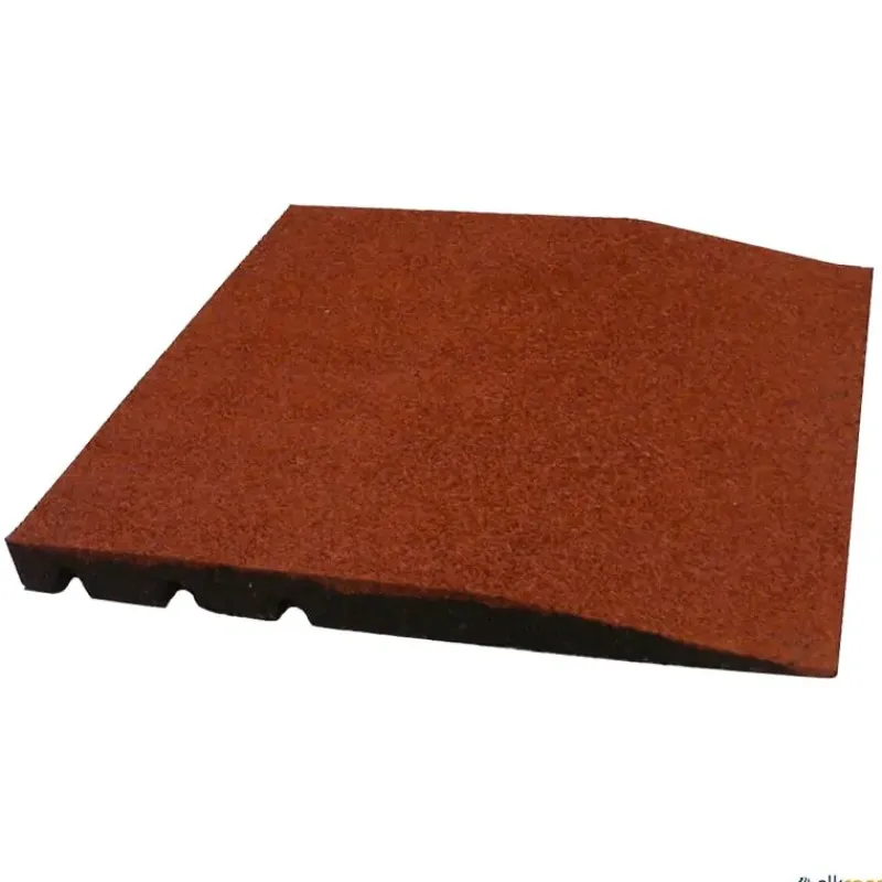 Loseta biselada de caucho para colocar en los laterales al formar una zona de seguridad, cumplen con la normativa EN-1177 de determinación de la altura de caída critica de impacto. La loseta lateral biselada se vende por unidades.